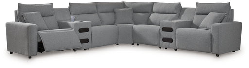 Sleek and streamlined, this contemporary power reclining sectional with console is ready to sweep you off your feet. Its plush, divinely comfortabl...