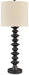 | Details | Made of polyresin with drum hardback fabric shade, Black finish, 3-way switch, 1 E26 socket, type A bulb recommended (not included); 150 watts max or LED equivalent; UL Listed, Assembly required | |