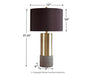 Faux concrete sets the stage for this ultra contemporary brass-tone table lamp. This substantial lamp is topped with a chic all-black shade with a goldtone foil interior for an elegant aesthetic.