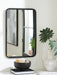 This accent mirror's sleek black finish and ribbed design add a touch of contemporary chic to any room. Its versatile hanging options allow you to display it vertically or horizontally, making it easy to complement your existing decor. The clean lines and simple shape create a modern and minimalist feel, while the substantial frame adds a touch of boldness.