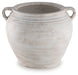 Details Made with terra cotta, Distressed white finish, Due to the finishing process of this product, some variations may occur, Not watertight; suitable for faux/dried florals and greenery only