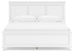 Details B680B4: Includes king panel headboard, footboard and rails, Made with hardwood solids and MDF substrate, White painted finish, Tapered feet, Foundation/box spring required, sold separately, Mattress available, sold separately, Assembly required, Bed is compatible with an adjustable base, B680B1: Includes dresser and mirror, Made with hardwood solids and MDF substrate, White painted finish, 7 smooth-gliding drawers with dovetail construction and ball-bearing side glides, Round metal drawer knobs with satin nickel-tone finish, Tapered feet, Mirror attaches to back of dresser, Assembly required,