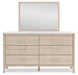 | Details | Dresser and mirror, Made with engineered wood (MDF/particleboard/plywood) for the right balance of affordability and durability, Smooth, light finish with replicated oak grain, Replicated marble top , Handles with champagne colored finish, 6 smooth-gliding drawers, Round post legs, Drawer interiors are lined with a faux linen laminate for a clean, finished look, Mirror attaches to back of dresser; can also be mounted on wall horizontally or vertically , Safety is a top priority, clothing storage units are designed to meet the most current standard for stability, ASTM F 2057 (ASTM International), Drawers extend out to accommodate maximum access to drawer interior while maintaining safety | |