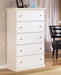 | Details | Made of engineered wood (MDF/particleboard), Pewter-tone knobs, Scalloped moulding, 5 smooth-operating drawers, Small Space Solution, Includes tipover restraint device, Safety is a top priority, clothing storage units are designed to meet the most current standard for stability, ASTM F 2057 (ASTM International), Drawers extend out to accommodate maximum access to drawer interior while maintaining safety | |