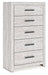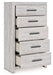 Details Made with engineered wood (MDF/particleboard/plywood) and decorative laminate for the right balance of affordability and durability, Whitewash replicated worn through paint with authentic touch, Decorative laminate replicates natural or man-made material surfaces with consistent color, pattern and texture, Large handles in black finish, 5 smooth-gliding drawers, Framed front and pilasters, Safety is a top priority, clothing storage units are designed to meet the most current standard for stability, ASTM F 2057 (ASTM International), Drawers extend out to accommodate maximum access to drawer interior while maintaining safety, Minor assembly required