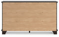 Feast your eyes on this richly versatile dresser. Its traditional-inspired dark brown finish effortlessly blends with contemporary bright nickel-tone pulls to create a stunning look that's not too stuffy or too trendy. Spacious drawers offer plenty of storage for your wardrobe and spare bed linens.