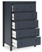 | Details | Made with engineered wood (MDF/particleboard/plywood) and decorative laminate for the right balance of affordability and durability, Matte navy blue finish, Decorative laminate replicates natural or man-made material surfaces with consistent color, pattern and texture, Knobs with matte navy blue finish, 5 smooth-gliding drawers with vinyl-wrapped sides and back for durability, Safety is a top priority, clothing storage units are designed to meet the most current standard for stability, ASTM F 2057 (ASTM International), Drawers extend out to accommodate maximum access to drawer interior while maintaining safety, Assembly required | |