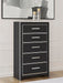 | Details | Made with engineered wood (MDF/particleboard/plywood) and decorative laminate for the right balance of affordability and durability, Matte black finish with subtle replicated wood grain, Decorative laminate replicates natural or man-made material surfaces with consistent color, pattern and texture, Chrome-tone accents, Large-scale chrome-tone handles with faceted details, 5 smooth-gliding drawers, Drawer interiors are lined with a faux linen laminate for a clean, finished look, Safety is a top priority, clothing storage units are designed to meet the most current standard for stability, ASTM F 2057 (ASTM International), Drawers extend out to accommodate maximum access to drawer interior while maintaining safety, Minor assembly required | |