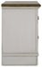 Traditional design. Casual appeal. You can have it all with this nightstand. A relaxed two-tone aesthetic merges with ornate profiled drawer fronts and pilasters to give the distinctive piece an allure all its own. Expansive drawers with quality dovetail construction and dark bronze-tone hardware reflect attention to detail from the inside out.