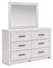 Details B3788B7: Includes panel headboard/footboard and rails, Made with engineered wood (MDF/particleboard/plywood) and decorative laminate for the right balance of affordability and durability, Whitewash replicated worn through paint with authentic touch, Decorative laminate replicates natural or man-made material surfaces with consistent color, pattern and texture, Foundation/box spring required, sold separately, Mattress available, sold separately, Minor assembly required, B3788B1: Includes dresser and mirror, Made with engineered wood (MDF/particleboard/plywood) and decorative laminate for the right balance of affordability and durability, Whitewash replicated worn through paint with authentic touch, Decorative laminate replicates natural or man-made material surfaces with consistent color, pattern and texture, Large handles in black finish, 6 smooth-gliding drawers, Framed front and pilasters, Mirror attaches to back of dresser, Safety is a top priority, clothing storage units are designed to meet the most current standard for stability, ASTM F 2057 (ASTM International), Drawers extend out to accommodate maximum access to drawer interior while maintaining safety, Minor assembly required,