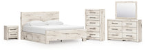 Lawroy King Panel Bed with Mirrored Dresser, Chest and Nightstand