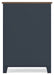 | Details | Made with hardwood solids, mindi wood veneer and MDF substrates, Two-tone finish features a dark slate blue with a light brown wood-tone top, Nickel-tone metal knobs, 4 drawers with fully finished interior, dovetail construction and heavy duty ball-bearing side glides | |
