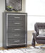 | Details | Made of engineered wood (MDF/particleboard) and decorative laminate, Gray finish with replicated wood grain, Faceted chrome-tone pulls and accents, 5 smooth-operating drawers, Drawer interiors are lined with a faux linen laminate for a clean, finished look, Safety is a top priority, clothing storage units are designed to meet the most current standard for stability, ASTM F 2057 (ASTM International), Drawers extend out to accommodate maximum access to drawer interior while maintaining safety | |