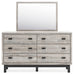 | Details | Includes dresser and mirror, Made with engineered wood (MDF/particleboard/plywood) and decorative laminate for the right balance of affordability and durability, Light gray finish over a replicated oak grain with authentic touch; base has matte black finish with subtle replicated wood grain, Decorative laminate replicates natural or man-made material surfaces with consistent color, pattern and texture, Handles with matte black finish, 6 smooth-gliding drawers, Drawer interiors are lined with a faux linen laminate for a clean, finished look, Mirror attaches to back of dresser; can also be hung horizontally or vertically, Safety is a top priority, clothing storage units are designed to meet the most current standard for stability, ASTM F 2057 (ASTM International), Drawers extend out to accommodate maximum access to drawer interior while maintaining safety, Assembly required | |