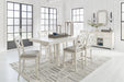 This counter height bar stool is sure to impress come mealtime. With its white finish and light gray upholstery, farmhouse-style seating has never been so fashionable. All that’s missing is you and your family.
