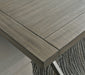 The use of mixed materials on this urban-inspired dining table makes it a true statement piece. Featuring a wood tabletop combined with a sturdy wood and metal base, this rectangular table combines a complex blend of stains and glaze—creating a weathered gray finish for a relaxed and harmonious update to your home.