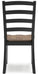 | Details | Made with solid wood frame; mango veneer and MDF substrate seat, 2-tone finish (seat with deep brown wood tone finish; frame with warm satin black finish), Ladderback design, Contoured seat, Assembly required | |