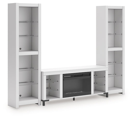 Signature Design by Ashley®Express your modern farmhouse style with this entertainment center with fireplace. Its wispy white finish over replicated oak grain is a delightful...