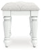 Fit for a princess. This vanity stool’s crisp matte white finish pairs with charming elements like turned legs, ornate beading and sumptuous button-tufted upholstery—perfect for your girly girl. This piece's crowning touches are sure to make your little one feel like royalty.