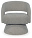 Indulge in the luxurious comfort and effortless style of this swivel accent chair. Its fine boucle upholstery and open barrel back create a chic and inviting look. And the 360-degree swivel base adds function to all that fabulous form.