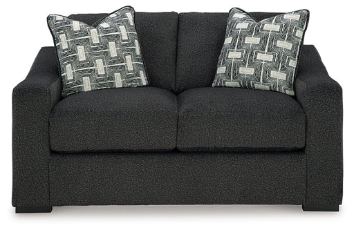 Signature Design by Ashley®Clean lines and a streamlined silhouette define the architectural attitude of this loveseat. Textured accent pillows in complementary colors add su...
