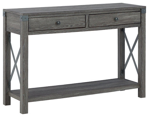 Signature Design by Ashley®This designer sofa table masters the art of simplicity. Bold, blocky profile is enriched with plank-effect styling and a textured grayish brown fin...