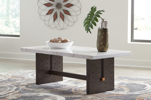 Signature Design by Ashley®Showing off big-time with oversized tabletop space, this rectangular coffee table serves up major contemporary style. Drawing from the beauty of cl...