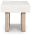 This end table is proof positive that sleek, contemporary styling can suit busy lifestyles. Its substantial cement-look top is perched on a textural gray base for an elevated mixed-material look. Don’t want to sacrifice function for fashionable flair? The table's MEGA-TUFF® melamine provides must-have durability and cleanability, resisting stains, scratches, heat and water.