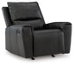 Details Pull tab reclining motion, Corner-blocked frame with metal reinforced seat, Attached cushions, High-quality foam cushions wrapped in poly fiber, 100% top grain leather covers inside areas such as the back, seat and arm cushions; skillfully matched faux leather covers the remaining areas, Due to its natural origin, real leather can show individual characteristics such as healed scars, growth marks, grain variation and shade variation, Natural variations make each hide unique and do not detract from the wearing qualities of leather, Gentle rocking motion