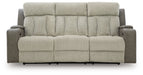 Refined relaxation, reimagined for the modern home. This power reclining sofa combines premium comfort with smart features like built-in storage arms, wireless charging and a drop-down table. One-touch reclining and adjustable headrests let you find your perfect position, while luxurious heat and massage functions melt away the day's stress. And for an added dose of style, it's wrapped in a two-tone upholstery that pairs soft textured fabric with coordinating faux leather.
