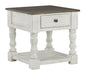 What a fresh interpretation of country classic style. Inspired by American farmhouse craftsmanship, but with an elevated sensibility, this square end table blends distinctive details such as turned post accents and raised drawer fronts for a substantial look that feels right at home. Those who appreciate rustic character should take note of the table’s thick crown moulding, beautified with a vintage two-tone finish. Robust legs lend a hearty, substantial feel ready to withstand the test of time.