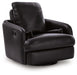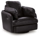 | Details | Corner-blocked frame with metal reinforced seat, One-pull reclining motion, Attached cushions, High-quality foam cushions wrapped in poly fiber, 100% top grain leather covers inside areas such as the back, seat and arm cushions; skillfully matched faux leather covers the remaining areas, Due to its natural origin, real leather can show individual characteristics such as healed scars, growth marks, grain variation and shade variation, Natural variations make each hide unique and do not detract from the wearing qualities of leather, Gentle gliding motion, 360-degree swivel | |