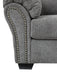 Why sacrifice comfort for style (or style for comfort) when you can have the best of both in this sofa and loveseat in pewter gray. Elements include a chic divided-back design and pillow top wrapped armrests that make nodding off all too easy. Calling attention to the elegantly flared armrests—black nickel-tone nailhead trim for a punch of cool character.