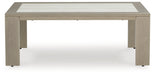 This outdoor coffee table is just what you need to get your outdoor party started. Though it looks remarkably like wood, its durable frame is perfectly suited for alfresco living. A striking tabletop with the look of natural stone serves up plenty of room for snacks and drinks.