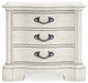 Add a touch of romance to your bedroom with this nightstand. Its antiqued white painted finish and serpentine-shaped silhouette are the definition of easy elegance. The nightstand's three spacious drawers accommodate bedside essentials, while an integrated power outlet and USB charging keep up with your high-tech lifestyle.