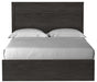 With its clean-lined look and modern attitude, this queen panel bed is a fresh style awakening. A warm charcoal hue over replicated oak grain easily complements other furniture finishes. The simple, unadorned profile is given depth and dimension with the addition of plank-style moulding on the headboard—proof that beauty lies in the details.