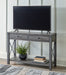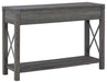 Open the door to modern farmhouse style with this console table. The beautiful woodgrain look and classic crossbuck metal accents are a cool touch, while the lower shelf provides surface space for fashionable home accessories. A pair of smooth-gliding drawers is the answer to the daily, where-are-my-keys question.