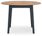 Complement your home’s simply relaxed sensibility with this drop-leaf dining table. A dark blue hue offers a chic contrast to the natural wood tone, for a casual look that vibes with a variety of aesthetics. When guests drop by, convert it from a space-saving two-seater to a larger table with the two drop leaves. Whether you're sipping your morning coffee, settling in for dinner or working from home, this table is smartly designed for everyday comfort and style.
