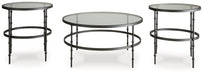 | Details | Includes coffee table and 2 end tables, Made with metal, Gunmetal finish, Inset tempered glass tabletops, Assembly required | |