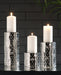 | Details | Set of 3, Glazed ceramic, Silvertone finish, Holds 3" pillar candles (not included) | |