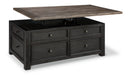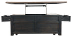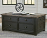 Shabby chic with a hint of down-home country, this lift-top coffee table is all the talk of today’s design world. Wood grain shows through the weathered gray-brown top in all of its earthy pleasure. The framed drawers, adorned with lovely traditional hardware, make it easy for you to store your belongings in style. And the table's lift top transforms your space into a workstation without a hitch.
